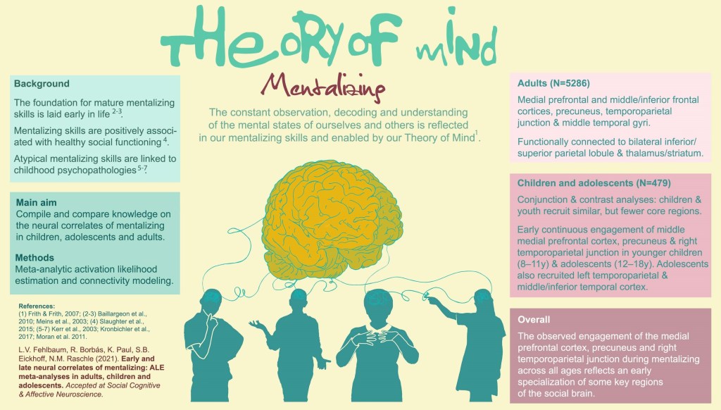 Fehlbaum, L. V., Borbás, R., Paul, K., Eickhoff, S. B., & Raschle, N. M. (2021). Early and Late Neural Correlates of Mentalizing: ALE Meta-Analyses in Adults, Children and Adolescents. Social Cognitive and Affective Neuroscience.